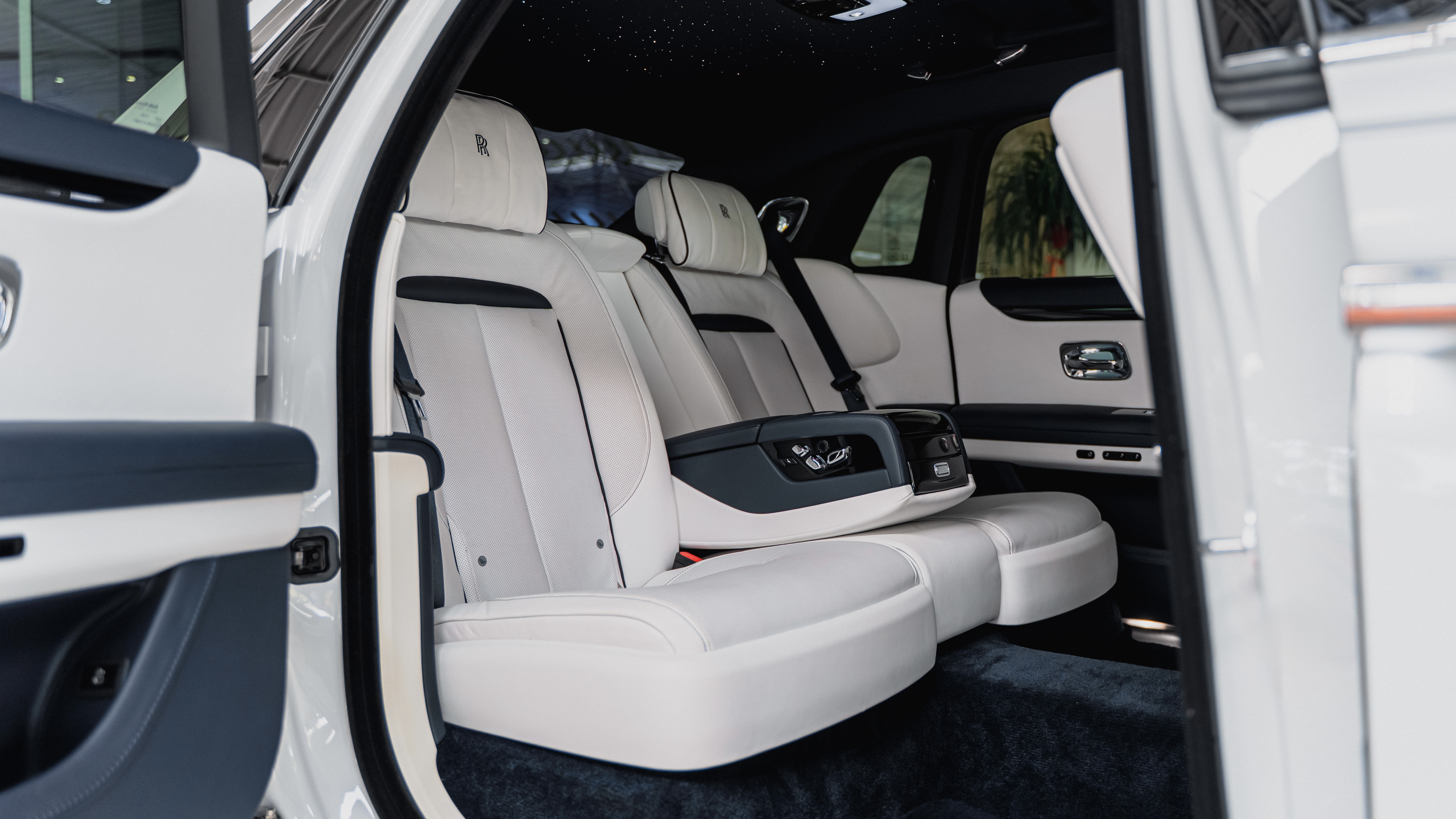 TYRE PRESSURE MONITOR, COMFORT ACCESS SYSTEM, SUN PROTECTION GLAZING, AUTO DOORS, FRONT & REAR CLIMATISED CONTROLLED SEATS, COMFORT REAR SEATS - ELEC ADJUSTABLE, AMBIENT AIR PACKAGE, FRONT & REAR MASSAGE FUNCTION, DRIVING ASSISTANT, SURROUND VIEW, NAVIGATION SYSTEM - PROFESSIONAL, HEADS UP DISPLAY, REAR ENTERTAINMENT, WIRELESS CHARGING, RR MONOGRAMS TO ALL HEADRESTS, FULL SEAT PIPING, TWIN COACHLINE, BESPOKE INTERIOR, PICNIC TABLES, TWIN VISIBLE EXHAUSTS, ROLLS ROYCE BESPOKE AUDIO, SATRLIGHT ROOF LINING, PIANO BLACK TRIM,